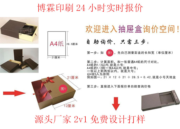 【博霖印刷】擁有20多年經驗的工藝師傅,源頭紙廠直接供紙。因此博霖可以把用一些特殊的工藝做出特殊紙張的效果,從而剩下特殊紙張費用。由於是源頭紙廠直接供紙,價格也是行業最底一手價也大大節省瞭紙張成本。因此博霖做的高檔包裝盒效果比别家的剛高檔,價格隻比普通包裝盒貴15%-30%。有沒有心動呢?心動就趕快聯系【博霖】吧!
