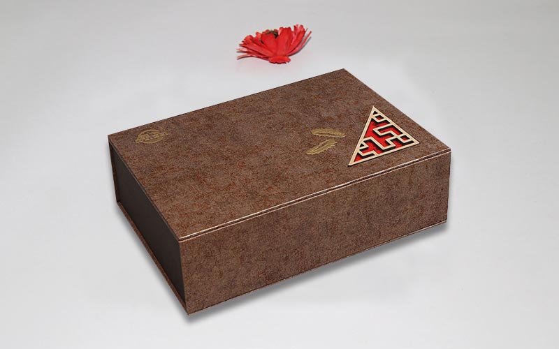 1.質材:盒子用棕色特種紙表面圖标燙金,擊凸,右下角貼镂空貼内襯紙外粘三角新木框。裱1500G雙灰闆,盒子盒型爲雙層抽屜,内托用黑色内卡紙做成小卡盒裏面裝重要産品。盒子粘黑色絲帶整款盒子手工制作。
