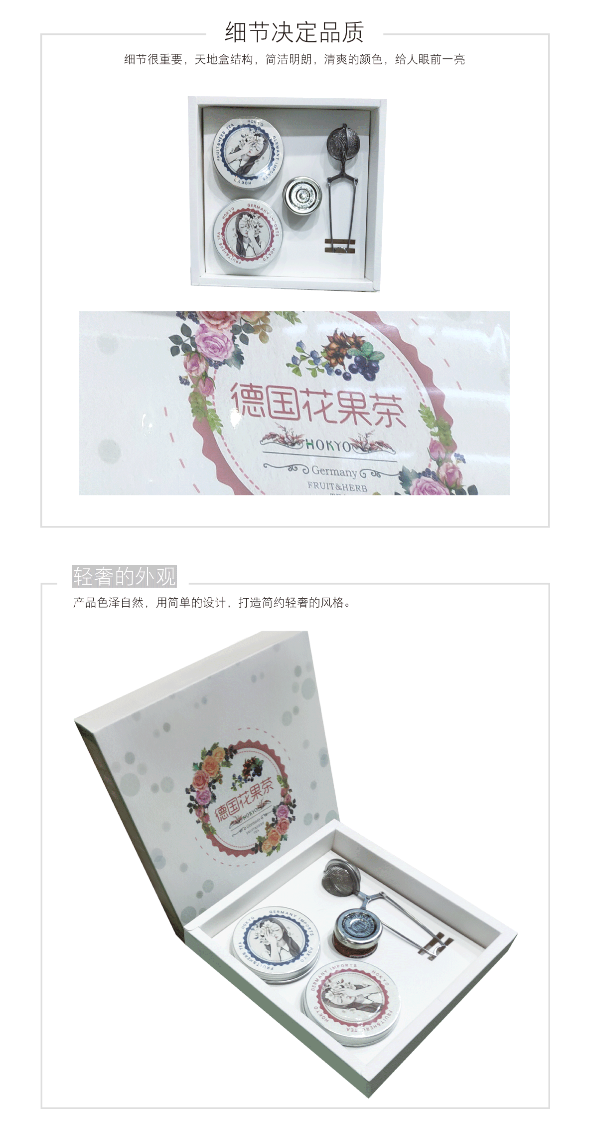 該款包裝盒是博霖印刷專門爲意大利進口花果茶定制的,材質選用的普通的卡紙盒型爲折疊的天地盒 。雖然材質普通但搭配上簡約大方的設計使得整個盒子看上清新脫俗,而且成本較低看起來又很好看深受客戶喜愛。