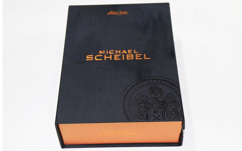 1.材質:高檔禮品盒定制面紙180G黑色紋路特種紙,不用印刷,盒面皮殼文字燙黃色金擊凸,LOGO圖片絲印局部UV,裱1800G滑面雙灰闆,内盒面紙用180G米黃色萊利紋特種紙,裱1800G滑面雙灰闆。盒型爲翻蓋盒整款盒子都是手工制作